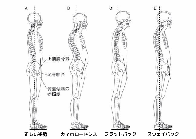 この姿勢は胸椎の後彎が増強していて骨盤が後傾している状態です。